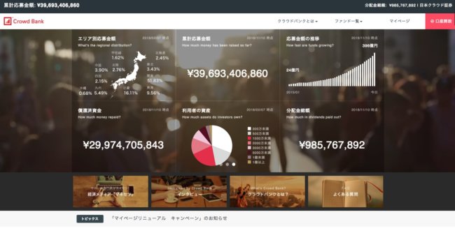 日本クラウド証券株式会社が運営を行っていて、2018年8月には累計応募金額が350億円を突破しています。