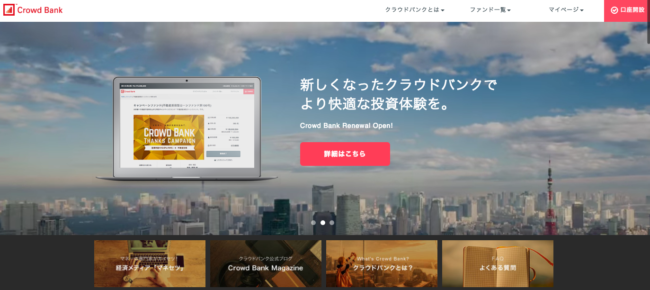クラウドバンクとは、日本クラウド証券株式会社が運営する「融資型クラウドファンディングサービス」です。